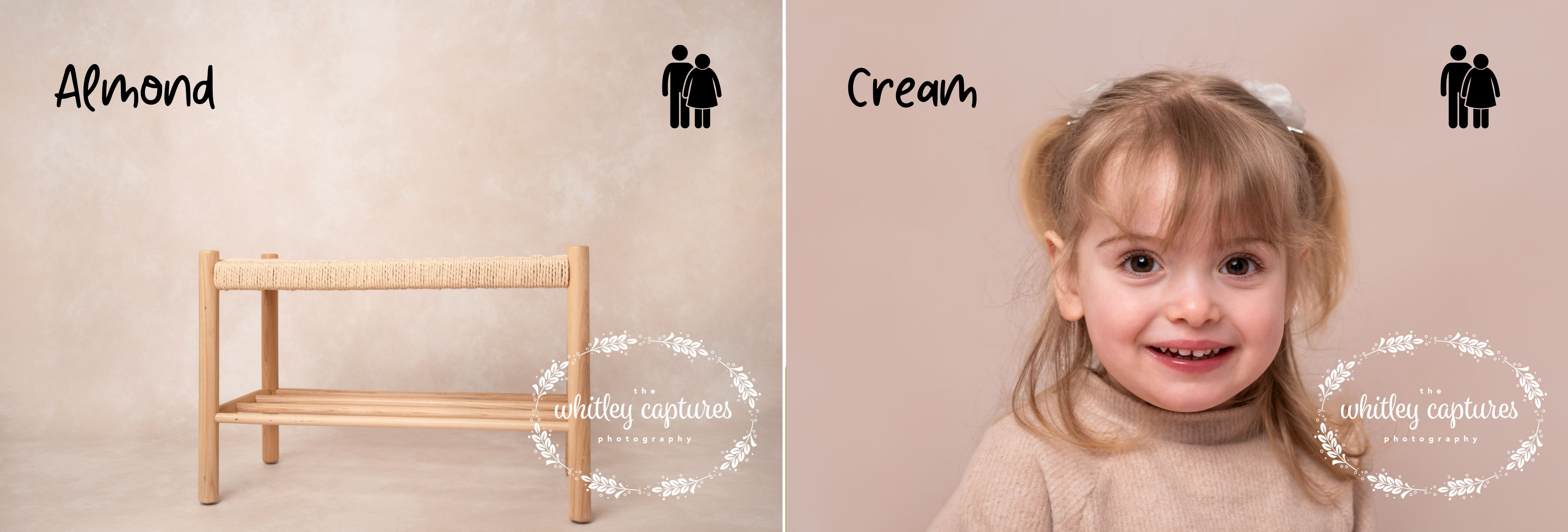 There are a bunch of solid-coloured backdrops, which are perfect for both plain, timeless backgrounds, or dressed up with accessories to meet your needs (a birthday session for example). Watch out for the adult or baby logo on each of the examples below - the adults logo indicates that the backdrops are big enough for adults to stand and larger numbers of people, whereas the baby logo indicates the backdrop is smaller and aimed at little ones, suitable for a small number of adults and requiring them to sit.